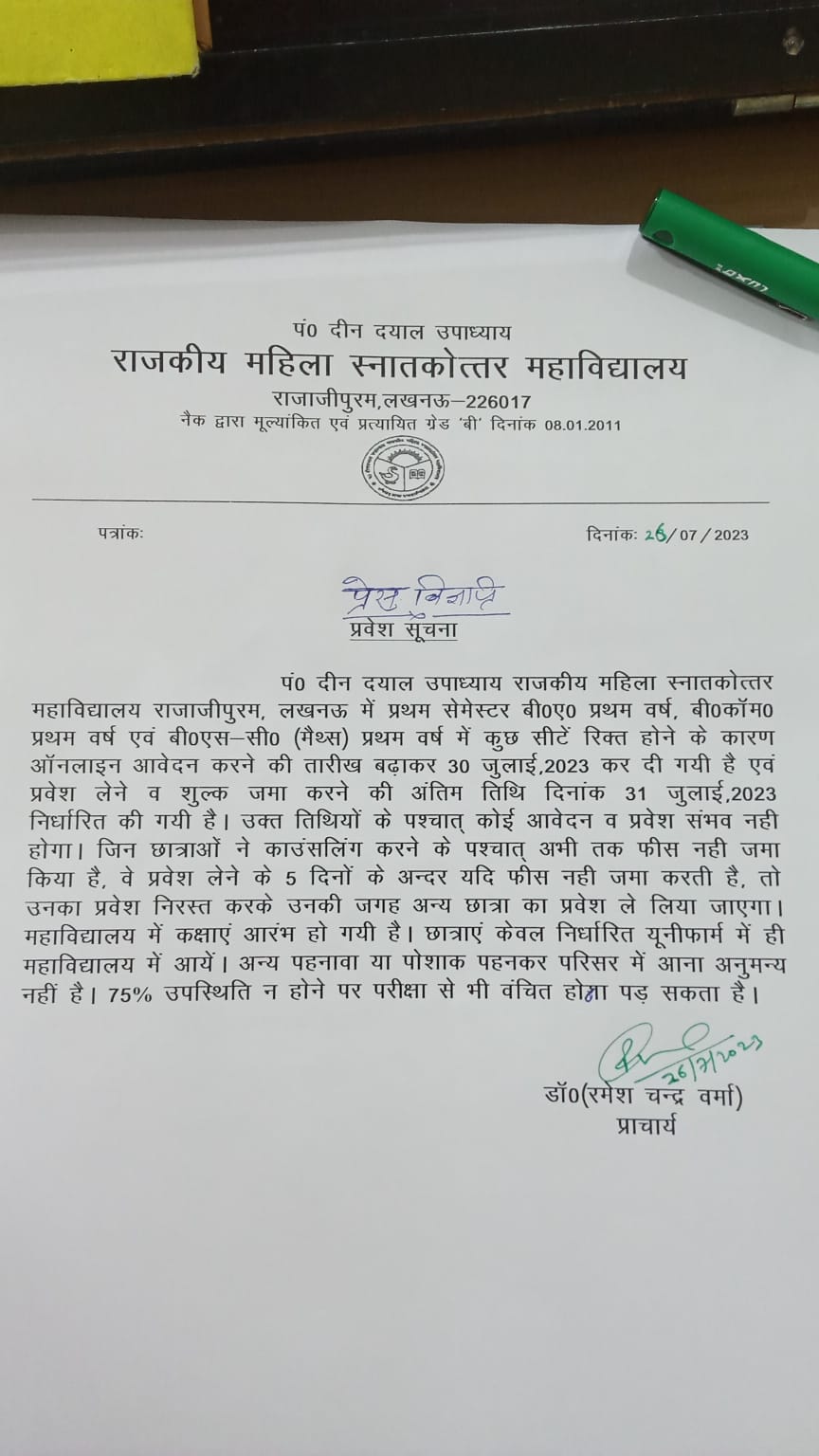 Counselling के समय मूल प्रमाणपत्रों के साथ LURN (Lucknow University Reg. No.) का प्रिंटआउट लाना अनिवार्य है।