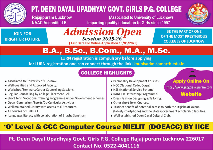 With its objective to cater higher education to the unserved and underserved the rural areas Pt. Deen Dayal Upadhyay Govt. Girls P.G. College.